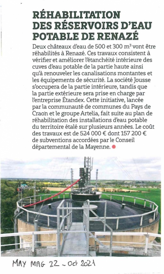 RÉHABILITATION DES RÉSERVOIRS D'EAU POTABLE DE RENAZÉ