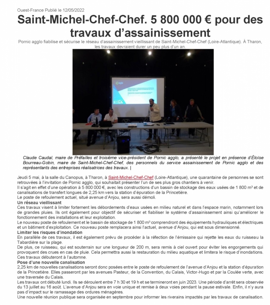 SAINT-MICHEL-CHEF-CHEF. 5 800 000 € POUR DES TRAVAUX D'ASSAINISSEMENT