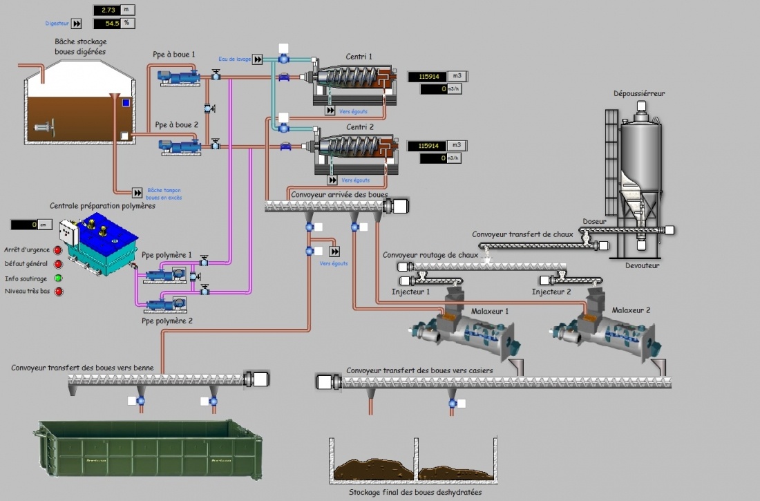 - les programmes d'automatismes (automates, supervision) qui sont ensuite testés en atelier, avant installation sur site, sur un banc d’essais permettant de valider les programmes automates et ainsi valider le fonctionnement en amont et tester tous les cas de figure et réduire les temps d’intervention sur site